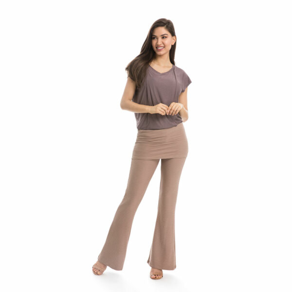 Imagina uma calça coringa com todo poder de um corte flare e que ainda por cima não marca as sinuosidades da pele. Pois materializamos tudo isso nessa sofisticadíssima calça com elastano robusto para gestação e para o resto da vida!